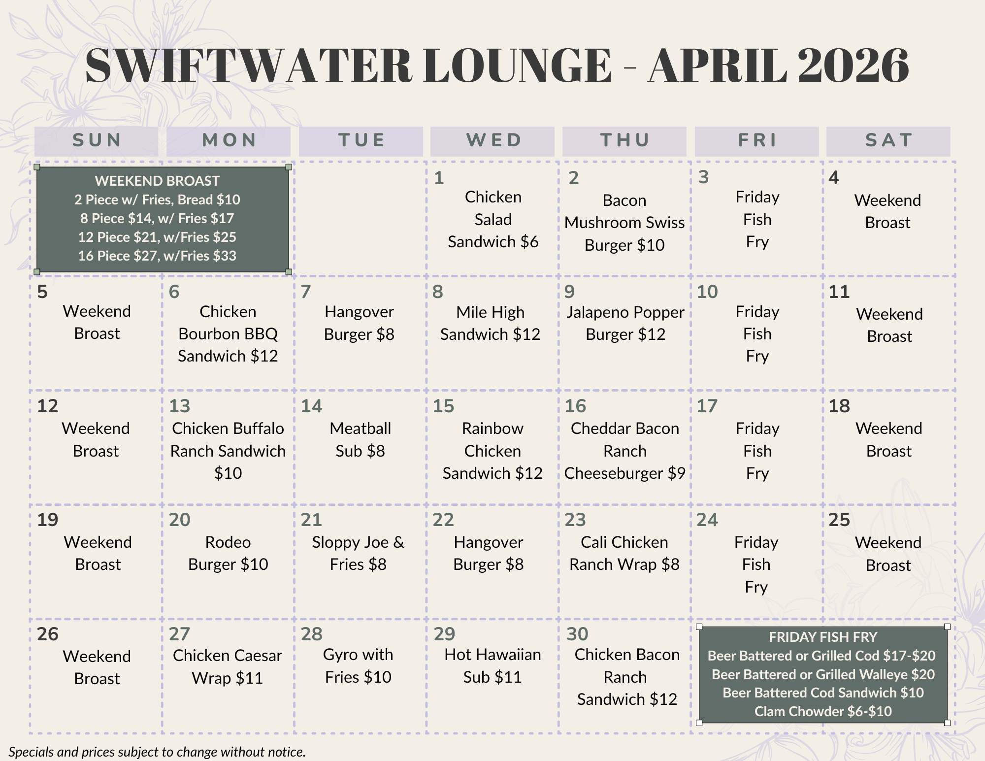 Sunday Featured Special | 1PM – 8PM