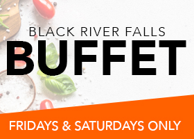 The Poker Bar and The Black River Bistro are now open. The Buffet is open only on Wednesdays. The Hotel Coffee Shop is now open and offering snacks and grab and go items. All beverage stations are open.