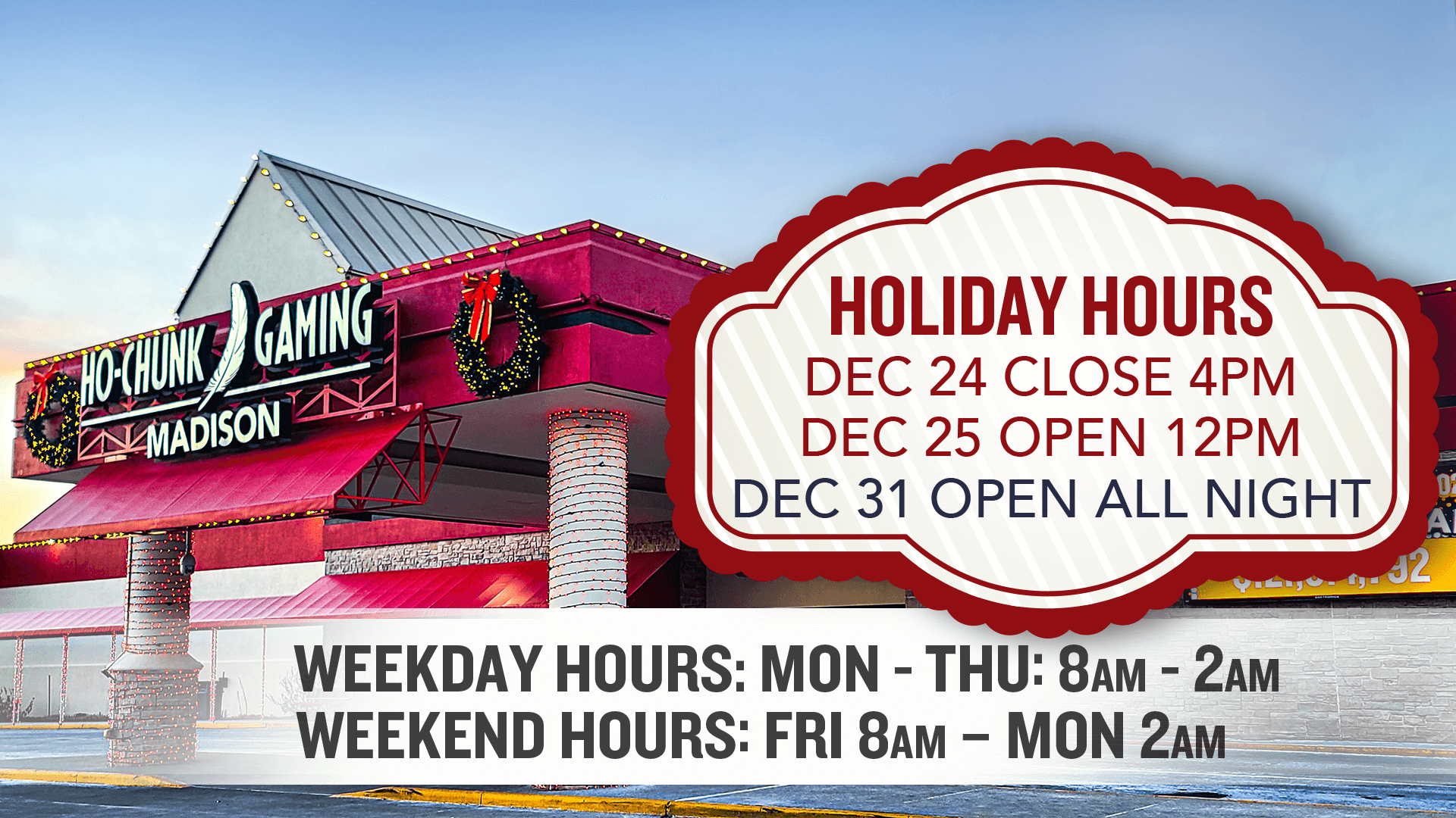 Ho-Chunk Gaming Madison features a beautiful 100% Smoke-Free gaming floor filled with a large variety of game themes just waiting for you to come play.