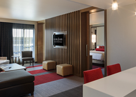 The Bay Suite 1.5 includes Sofa Sleeper, Conference Space, Kitchenette, Waterfall Shower, (2)